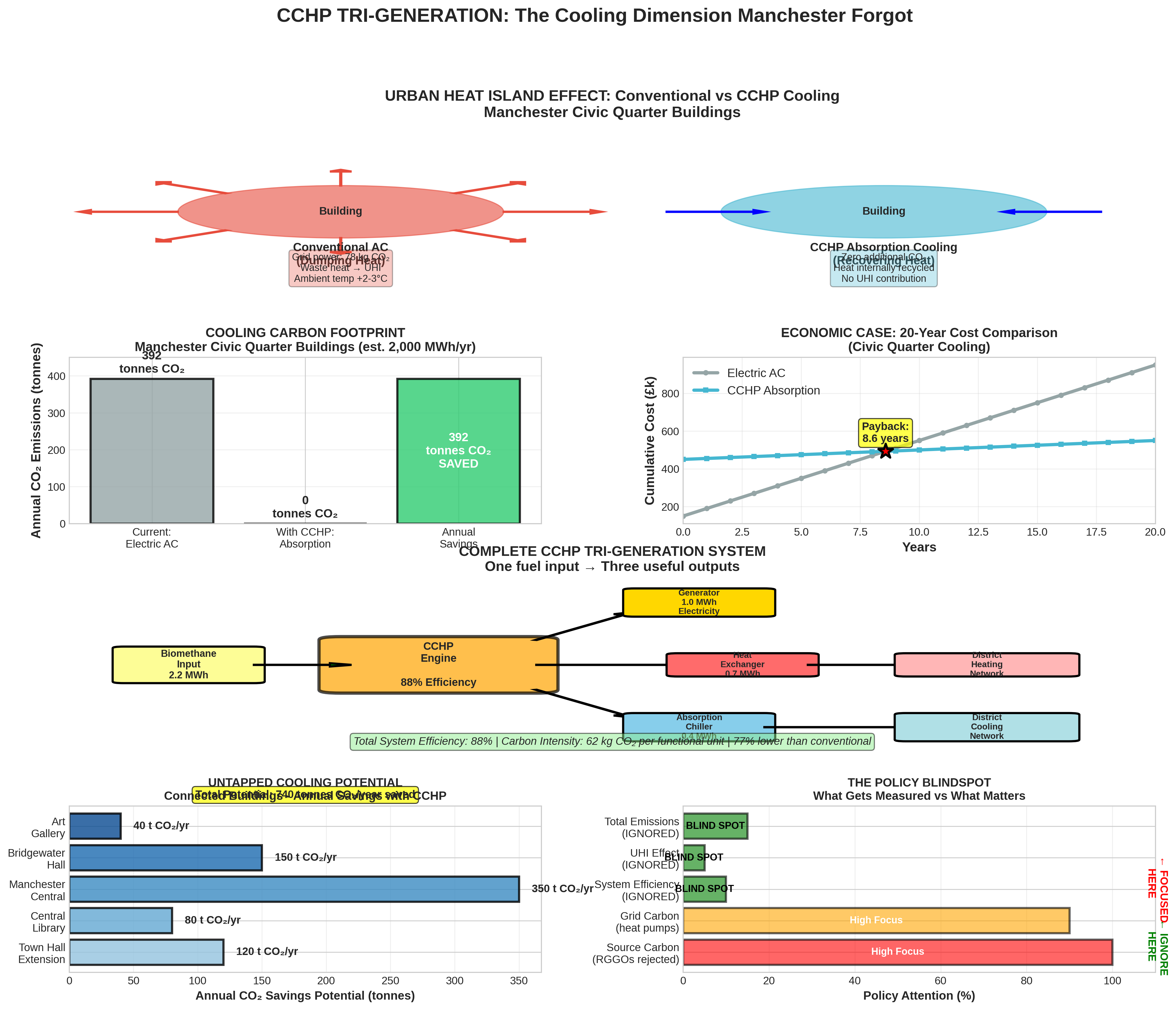This report presents the carbon footprint analysis Manchester refuses to conduct, explores the overlooked CCHP (tri-generation) potential that could eliminate cooling-related emissions entirely, and exposes how ideological commitment to 'decarbonisation' metrics has blinded policymakers to basic thermodynamics.
