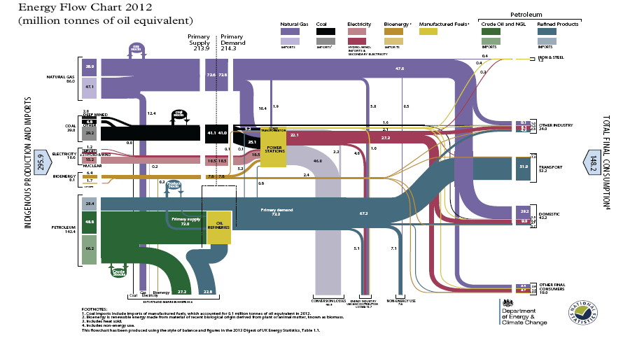 Interestingly enough the usage of Gas by the domestic sector {Heating and Cooking} at 27.4 is within the heat losses of Centralised Energy production!